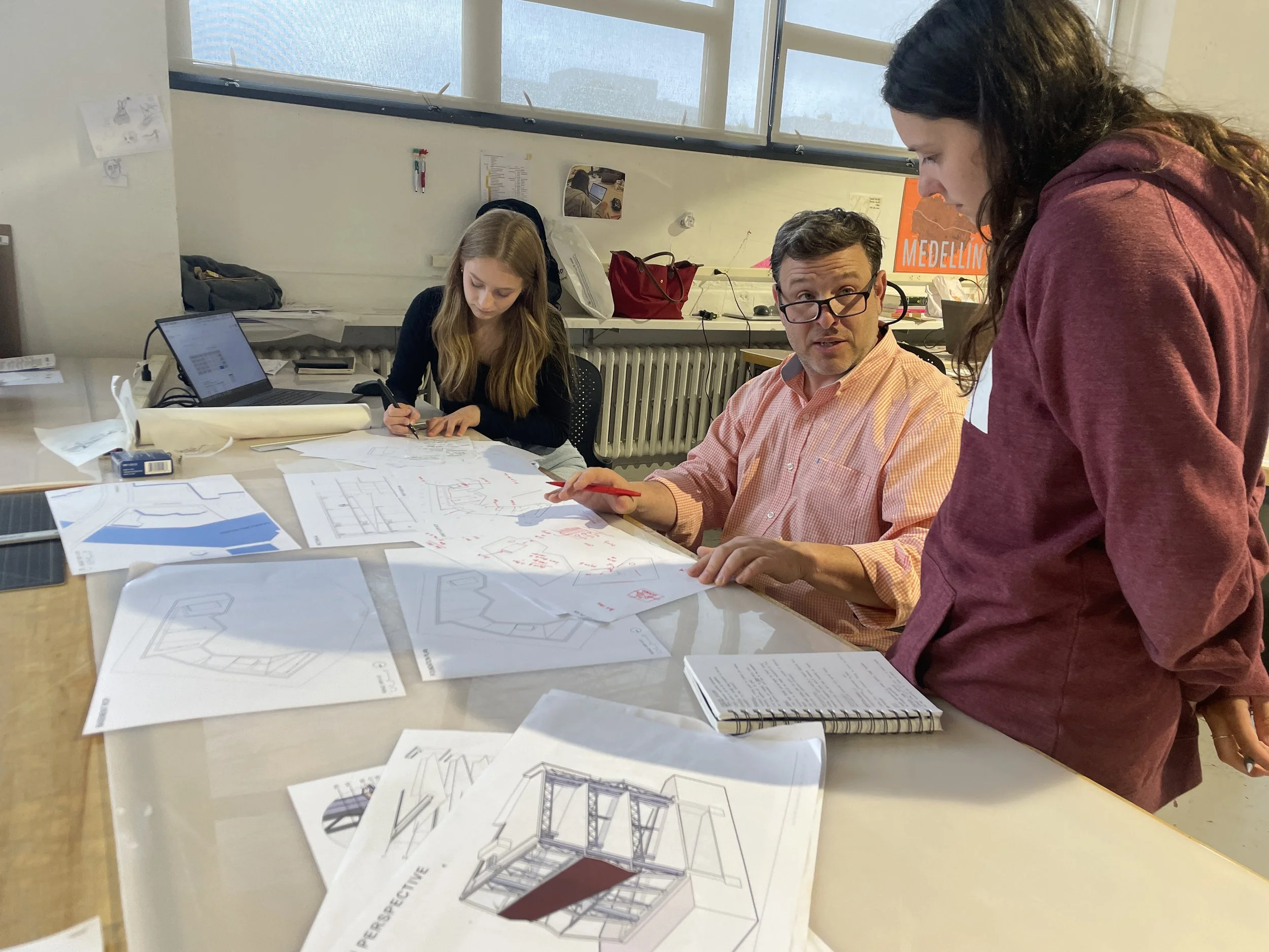 The project for Wentworth’s School of Architecture and Design Program this semester was for Student Teams to design a new community-based maker space inspired by the Autodesk Instructables community. Wentworth plans “Consultant’s Week” for Student Teams to prepare their design work for a consultation and workshop with Design Professionals and Professional Engineers. Student Teams and Consultants collaborate on the design of building systems and their integration into a semester long architectural design project.